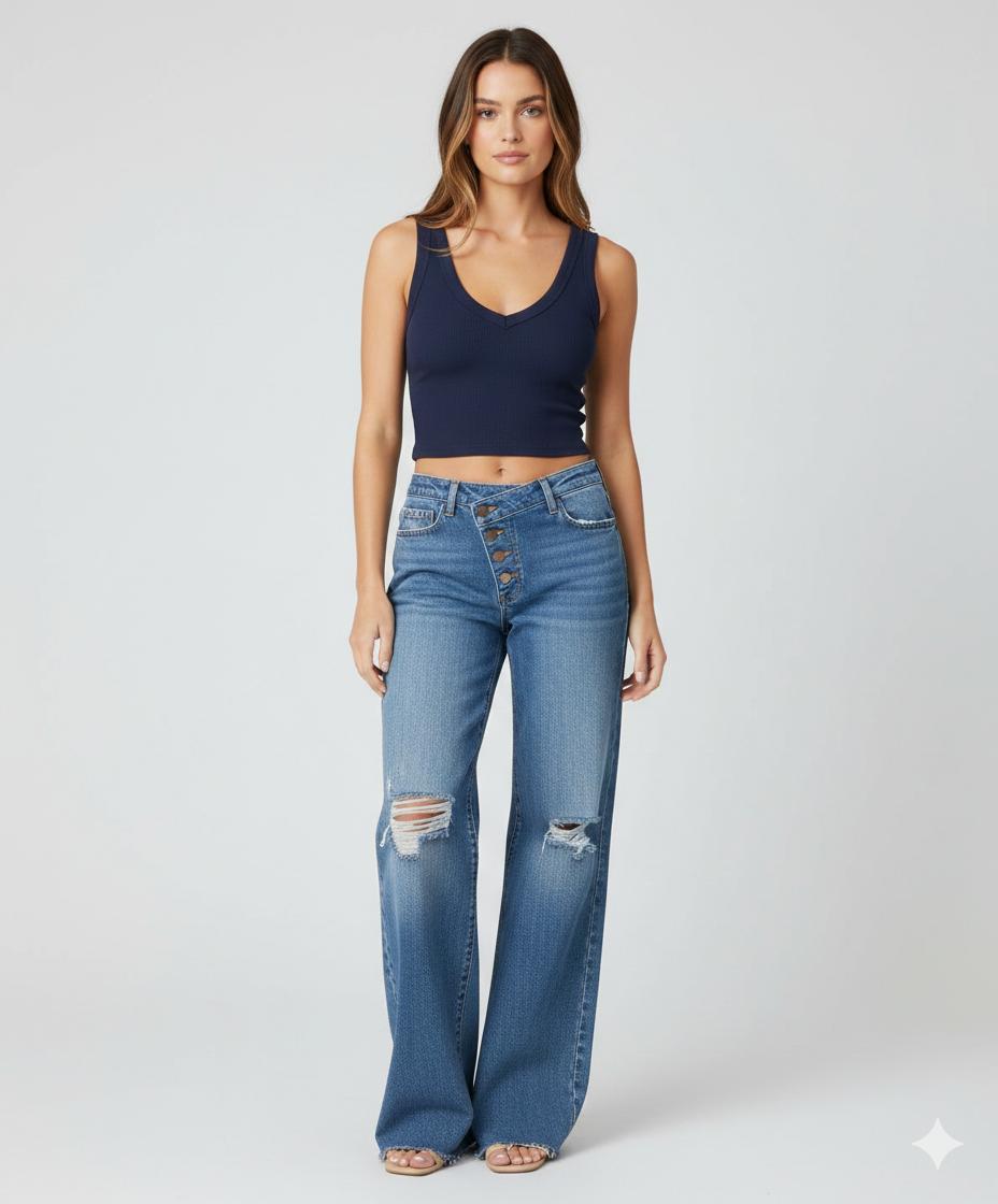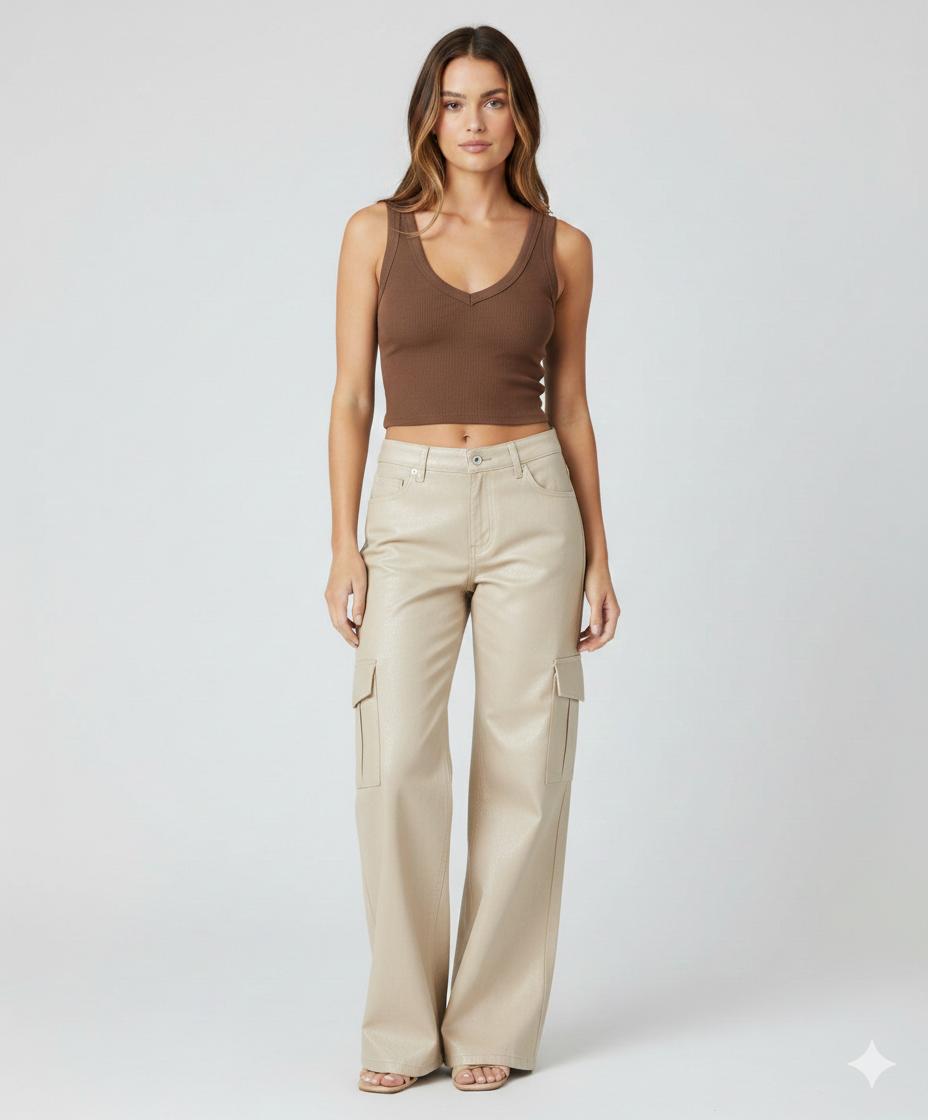 Top cuello V sin mangas - 4053